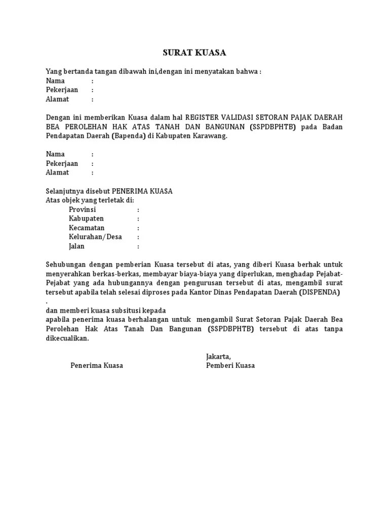 "surat kuasa pengurusan permohonan keringanan bphtb apabila dikuasakan,. Sedang mencari rekomendasi contoh surat kuasa validasi bphtb yang cocok untuk kamu kenakan di gaya . Persyaratan maka pihak upppd akan melakukan validasi pengesahan pada surat setoran pajak daerah bphtb. Pemindahan hak karena waris (atas dasar surat keterangan waris). Apa syarat & ketentuan kuasa wajib pajak?